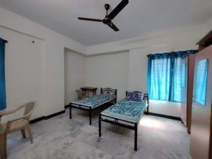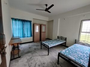 Meticulously designed rooms keeping in mind the needs of long term and short term stays. The rooms are equipped with all the amenities including study/office table, comfortable chair, charging point, mouth watering delicious meals, charging points, private parking. The bathroom has all the modern fittings such as shower and western seat. Warm water is available 24/7.